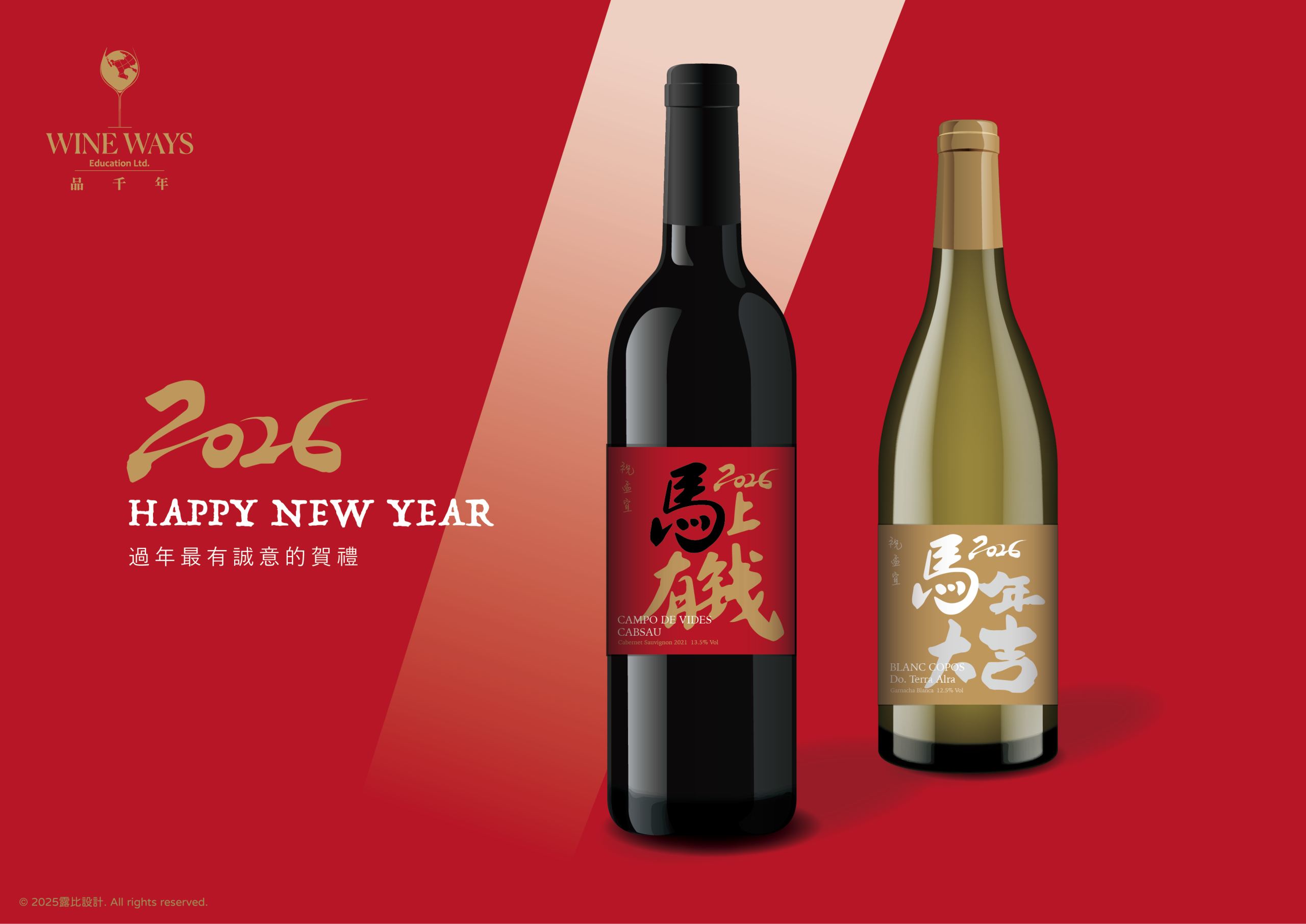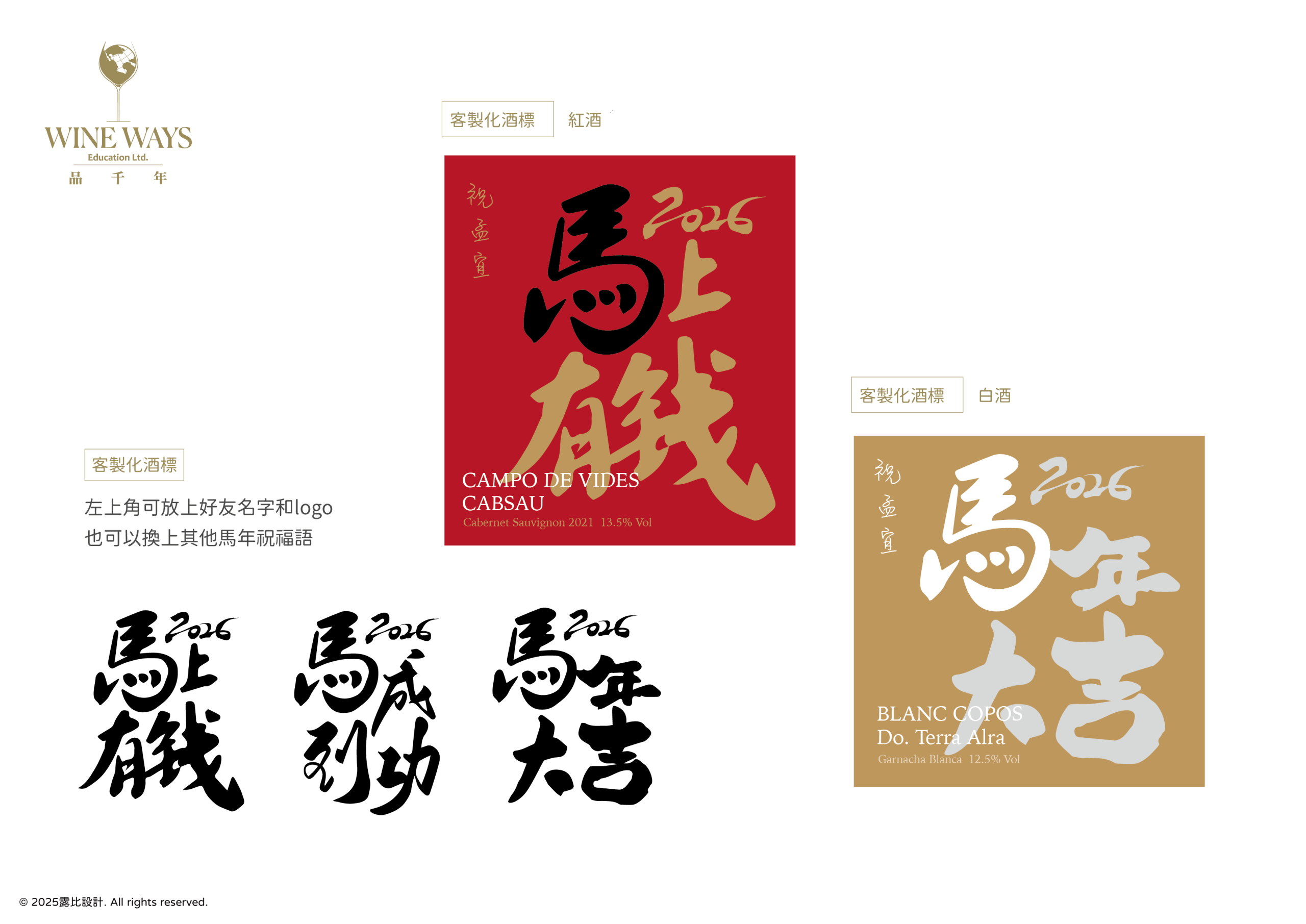 3.固定設計無法更動的有:下方英文為酒莊名字、以及主圖書法馬年祝賀詞。